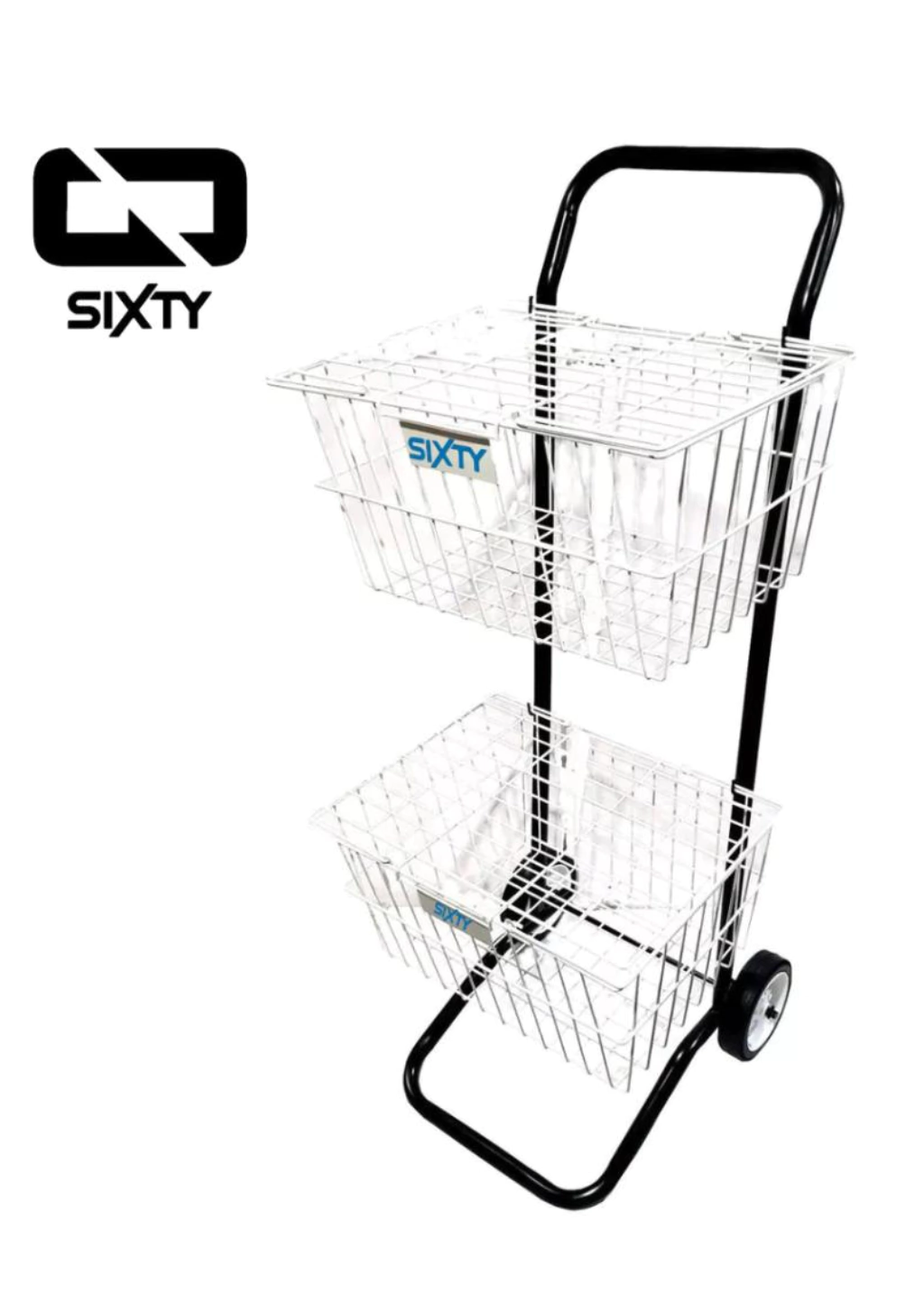 Su estructura cuenta con dos canastos móviles equipados con manijas ergonómicas y tapas con traba de seguridad, que aseguran una capacidad total para 100 pelotas. Su diseño práctico y sofisticado facilita el manejo, ofreciendo una experiencia óptima tanto para entrenadores como jugadores.